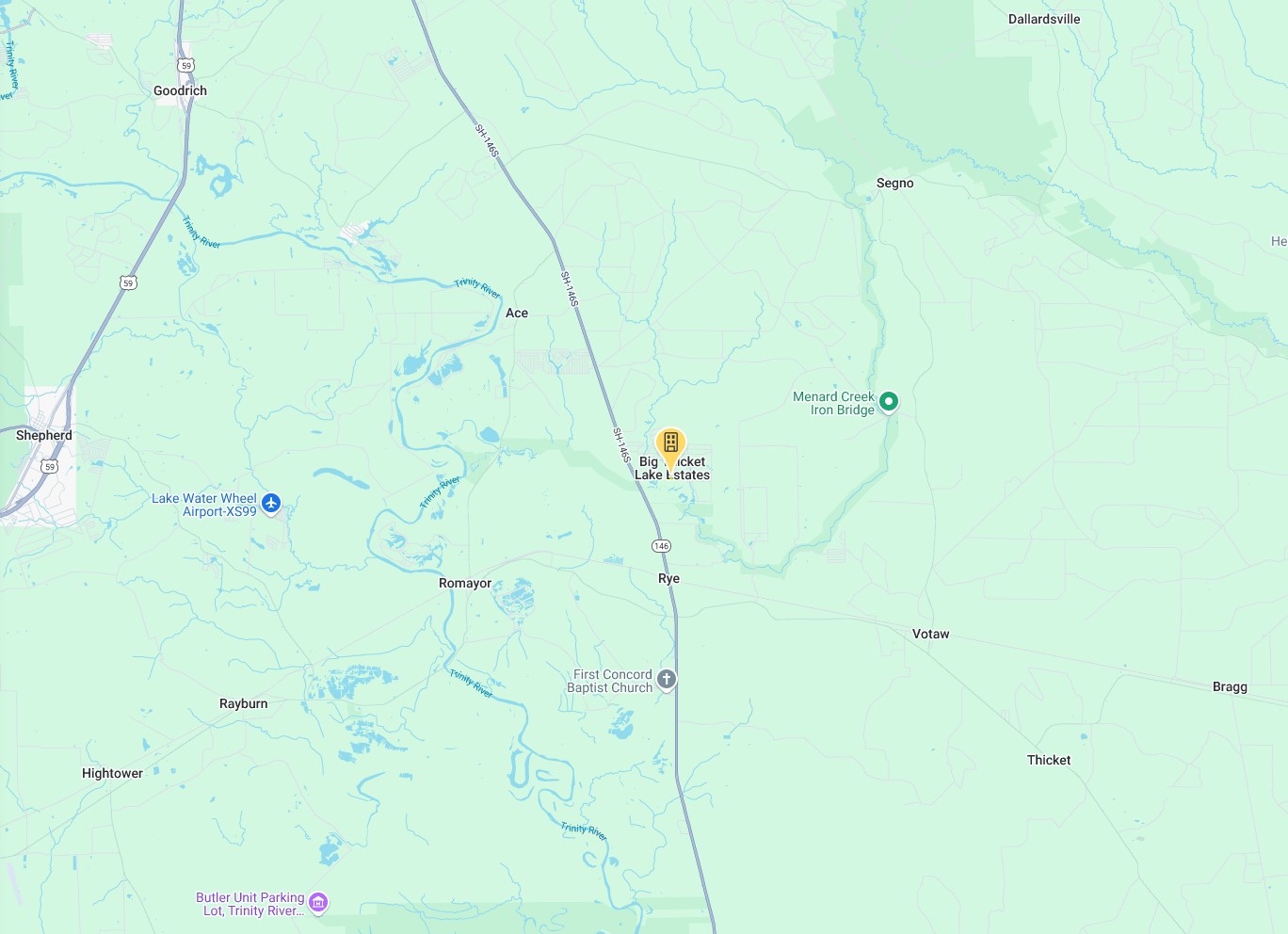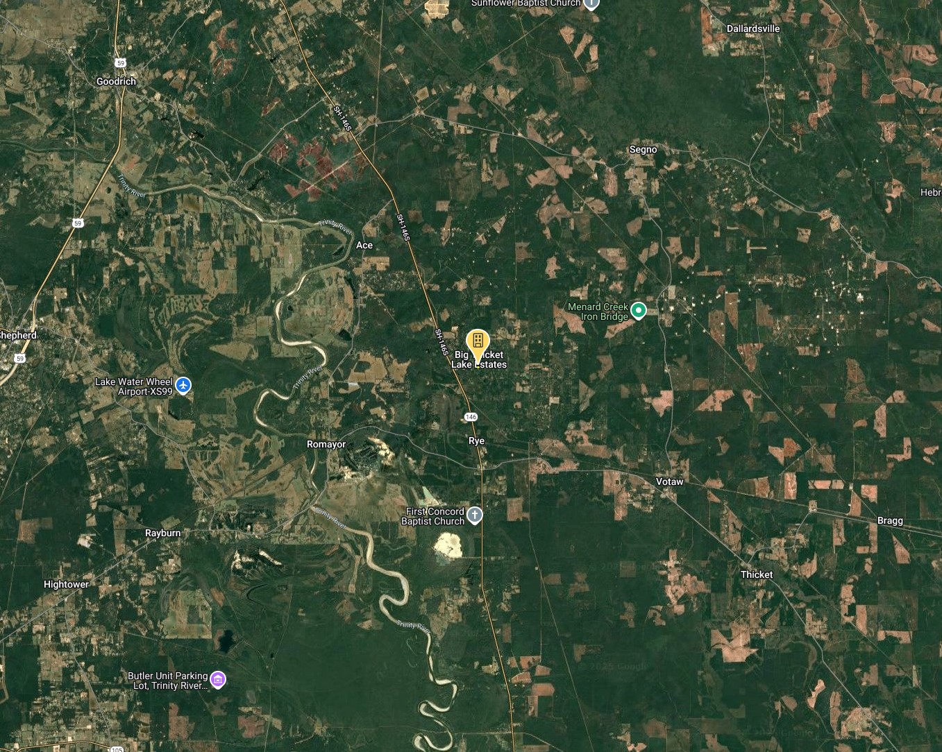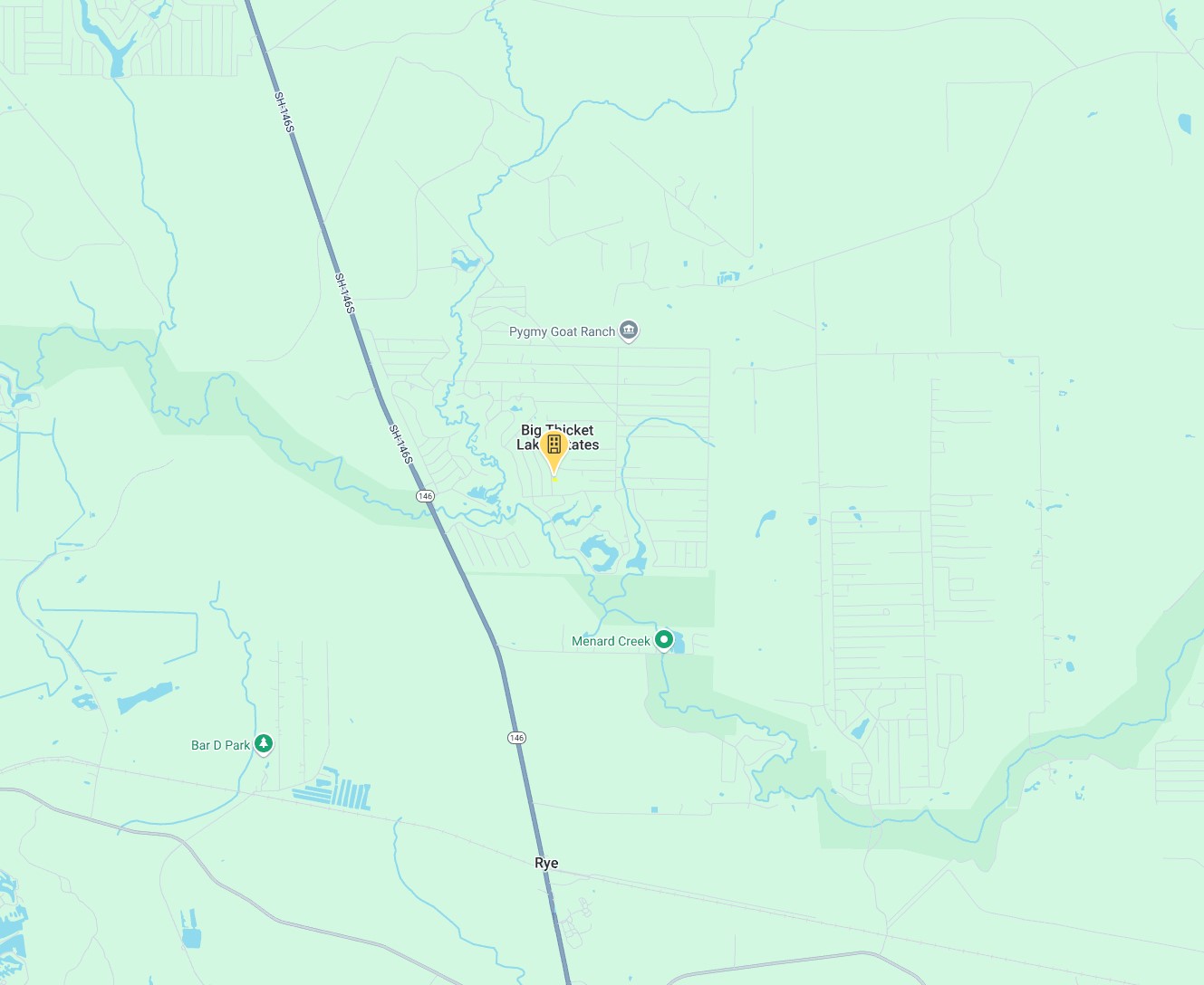 Big Thicket Lake Estates is a census-designated place (CDP) situated in both Polk and Liberty counties in southeastern Texas. Located near Cleveland, it offers a tranquil, rural lifestyle centered around a series of man-made lakes, with Bear Foot Lake being the largest. The community is accessible via Texas State Highway 146, providing convenient routes to nearby cities such as Livingston (18 miles north) and Liberty (31 miles south) .