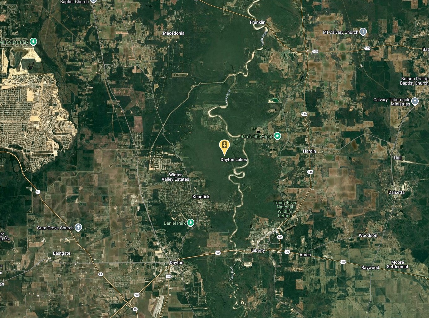 Dayton Lakes estates is a city in Liberty County and is located 48.9 miles or just 1.1 hours north east of Houston, Texas.