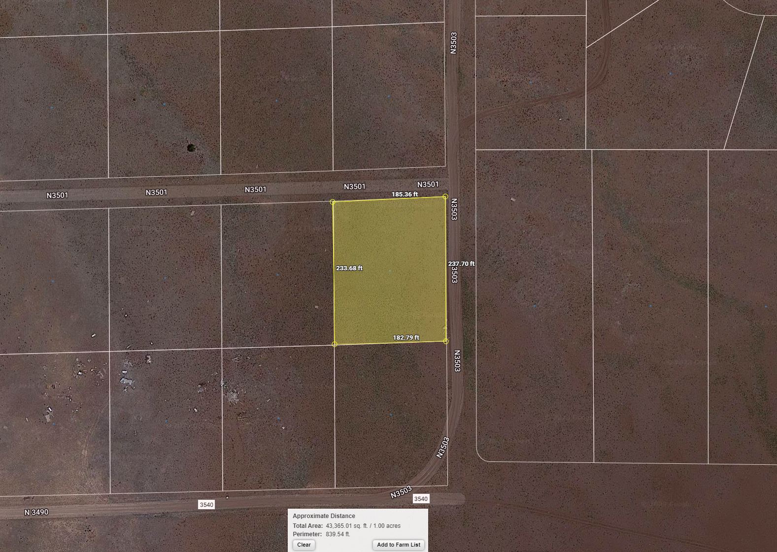 This 1 acre lot is located in Concho, Arizona and the address is County Road N3501, Concho, AZ 85924.