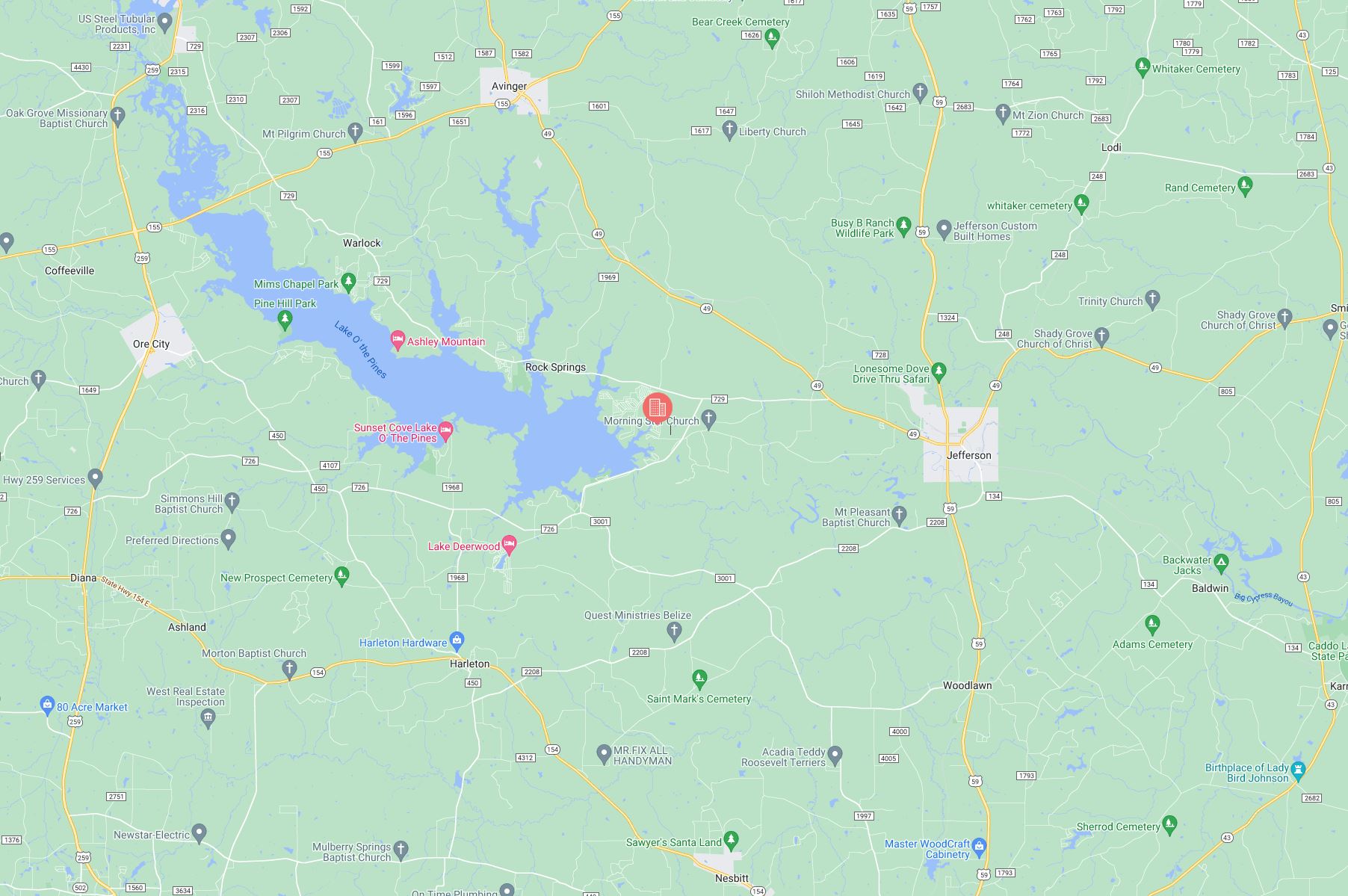 Jefferson is located just over 160 miles East of Dallas, Texas and sits between two lakes, Lake O’ the Pines and Caddo Lake. Caddo Lake is one of the best bass fishing lakes in Texas, known for being a shallow, cypress filled lake with emergent vegetation and swampy bayous. Located in the Piney woods of Texas, Jefferson is located in a beautiful portion of land littered with smaller creeks fed by Big Cypress Bayou, which connects Caddo Lake to the Lake O’ the Pines.