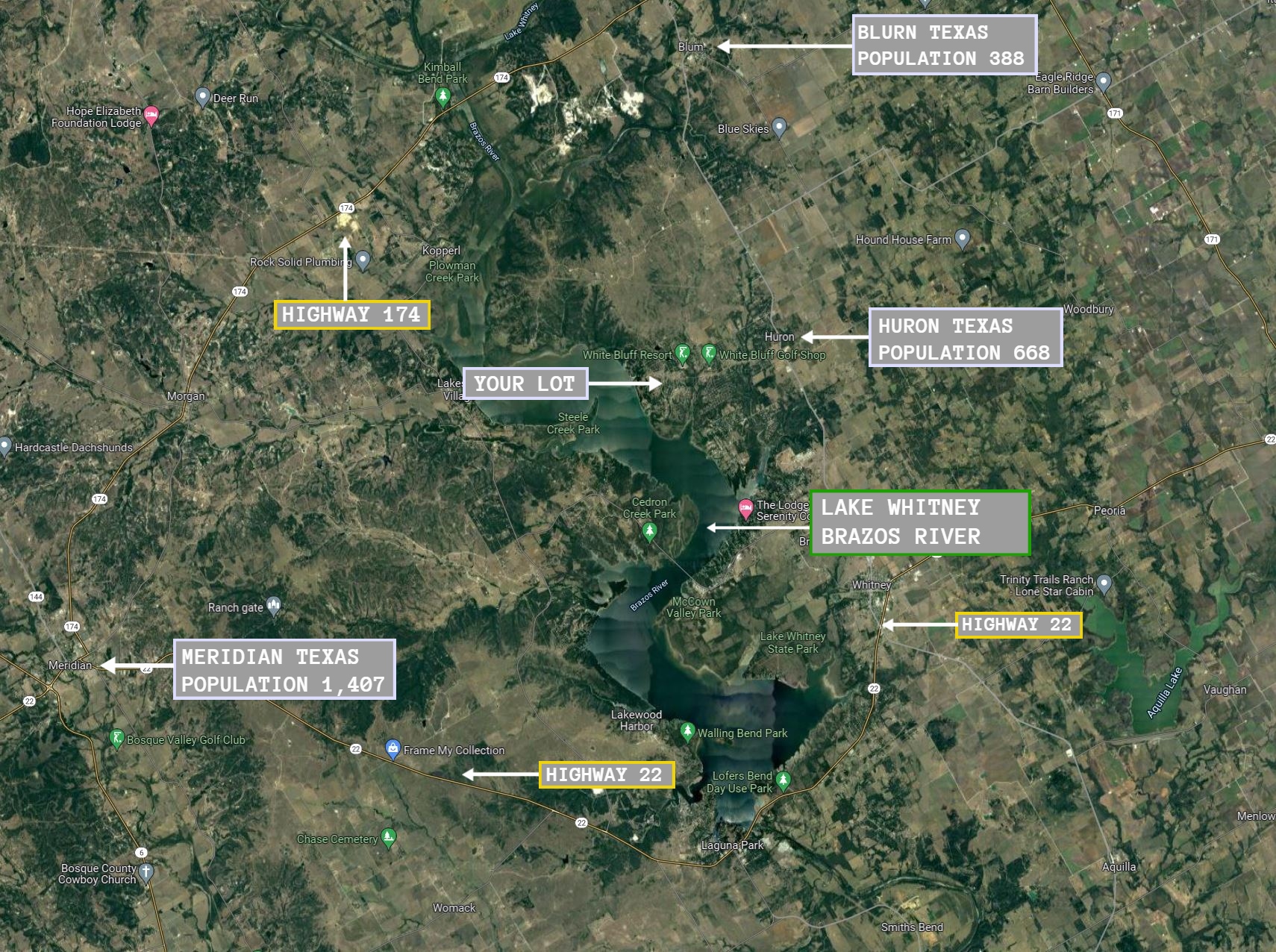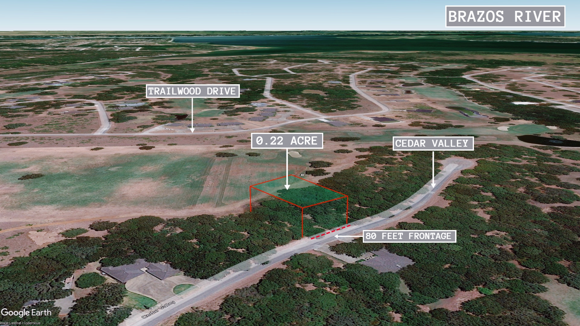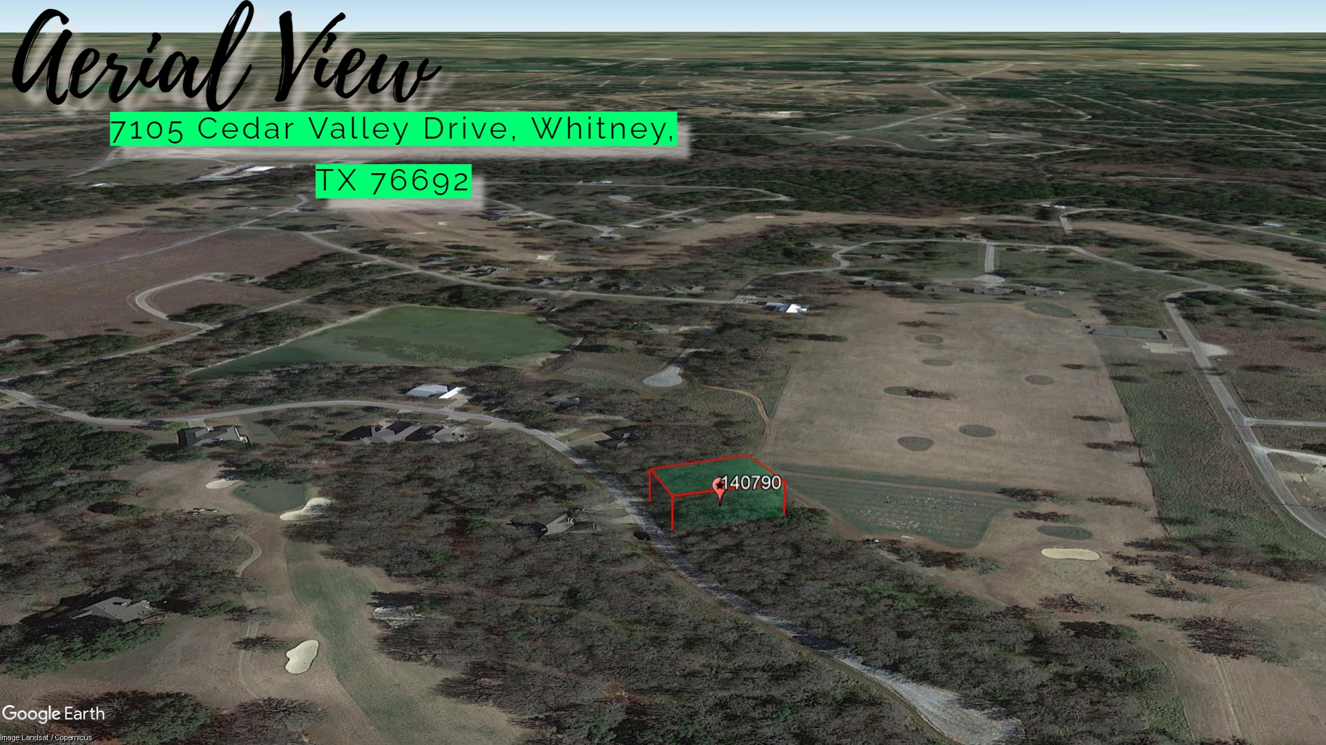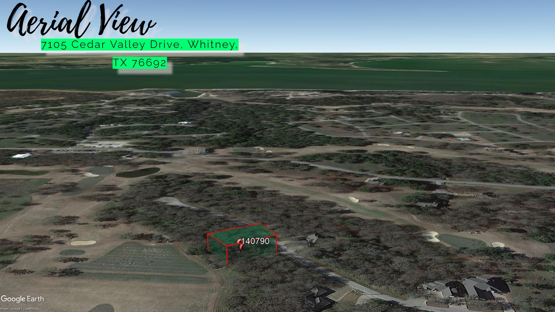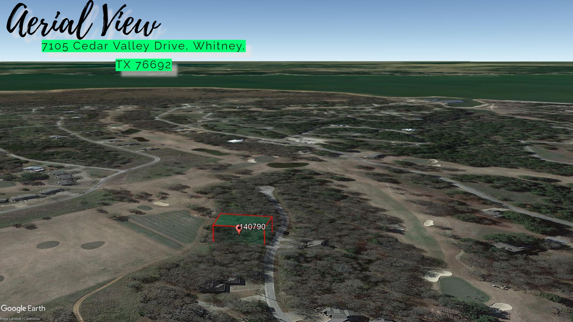 This 0.22 acre lot is located in Whitney, Texas and the address is 7105 Cedar Valley Drive, Whitney, TX 76692.
