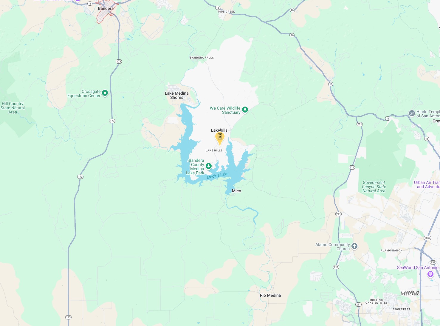 Lakehills is located less than a hour north west of San Antonio. Lakehills is surrounded by the Medina Lake and close to the Bandera County Medina Lake Park.
