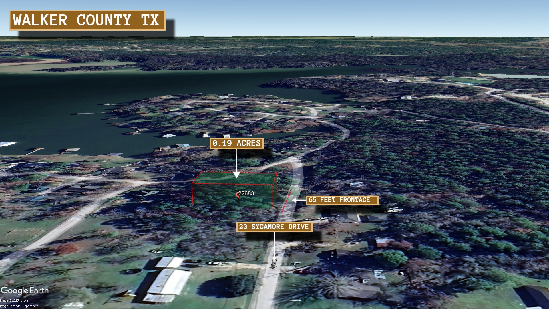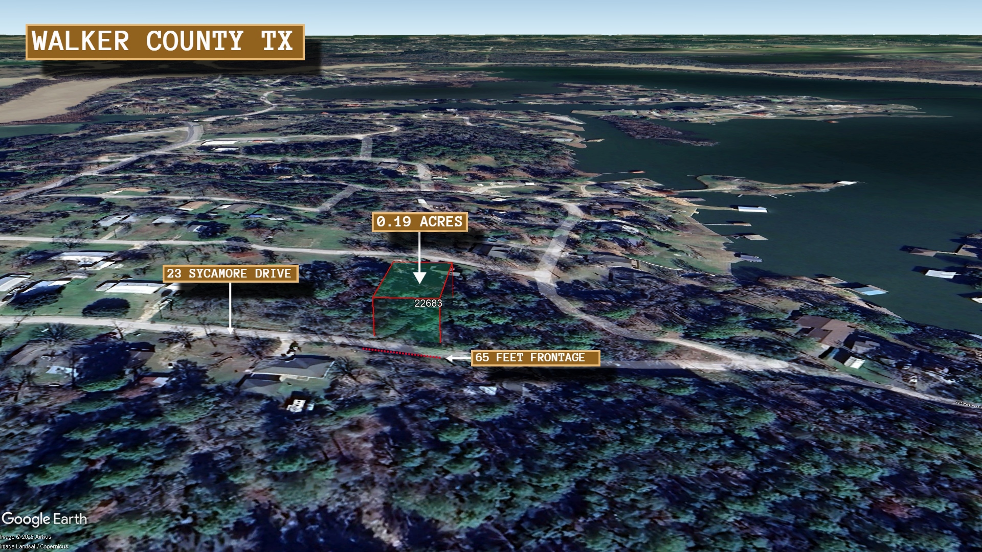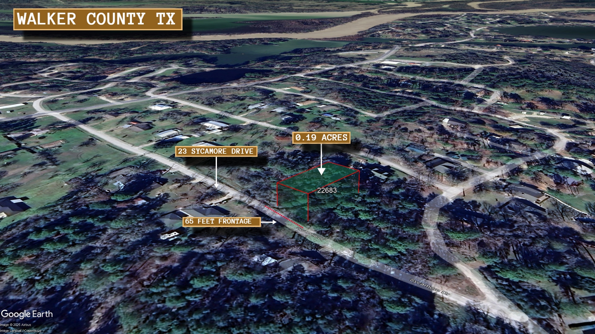 This 0.19 acre lot is located in Huntsville, Texas and the address is 23 Sycamore Drive, Huntsville, TX 77320.