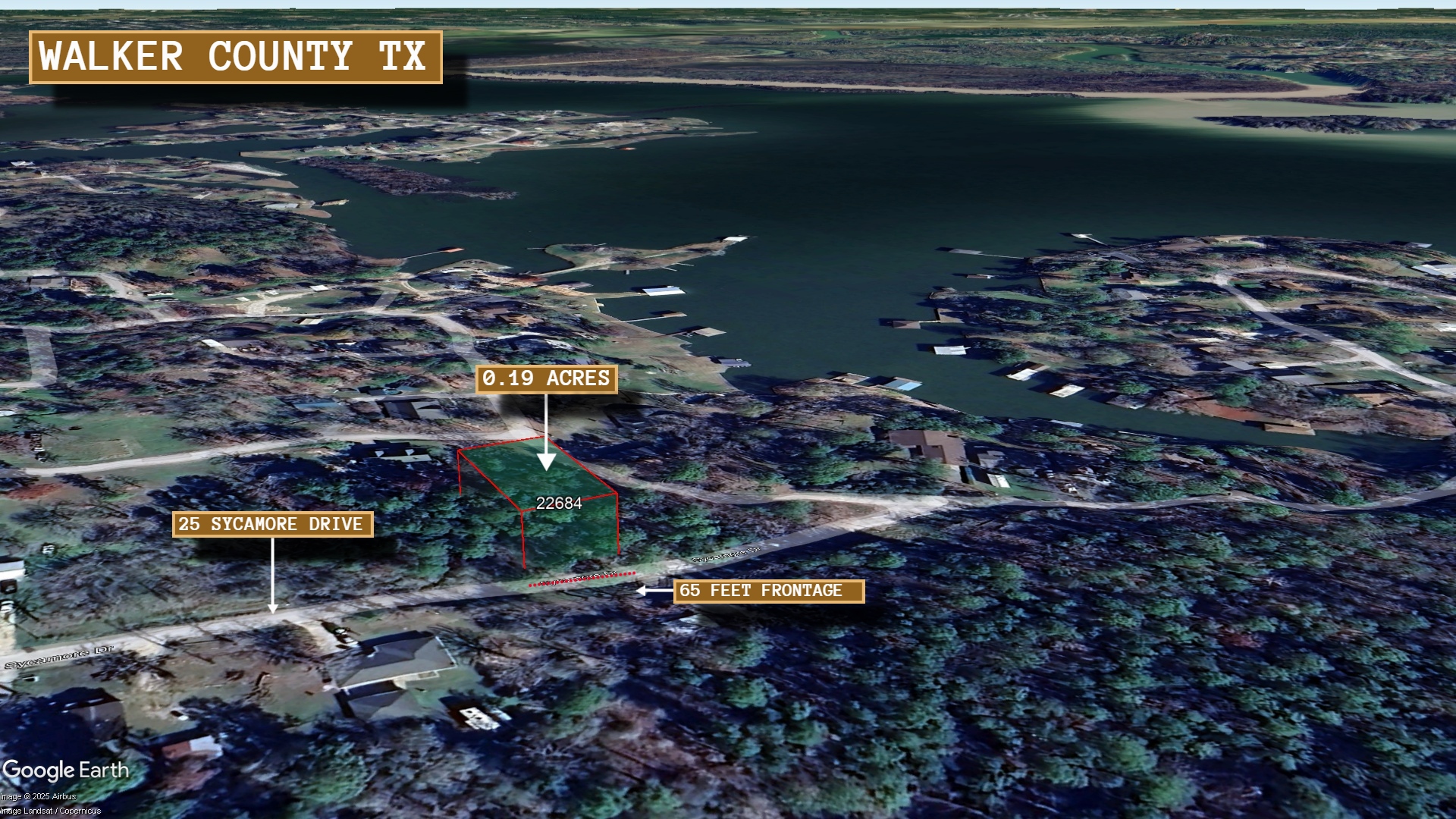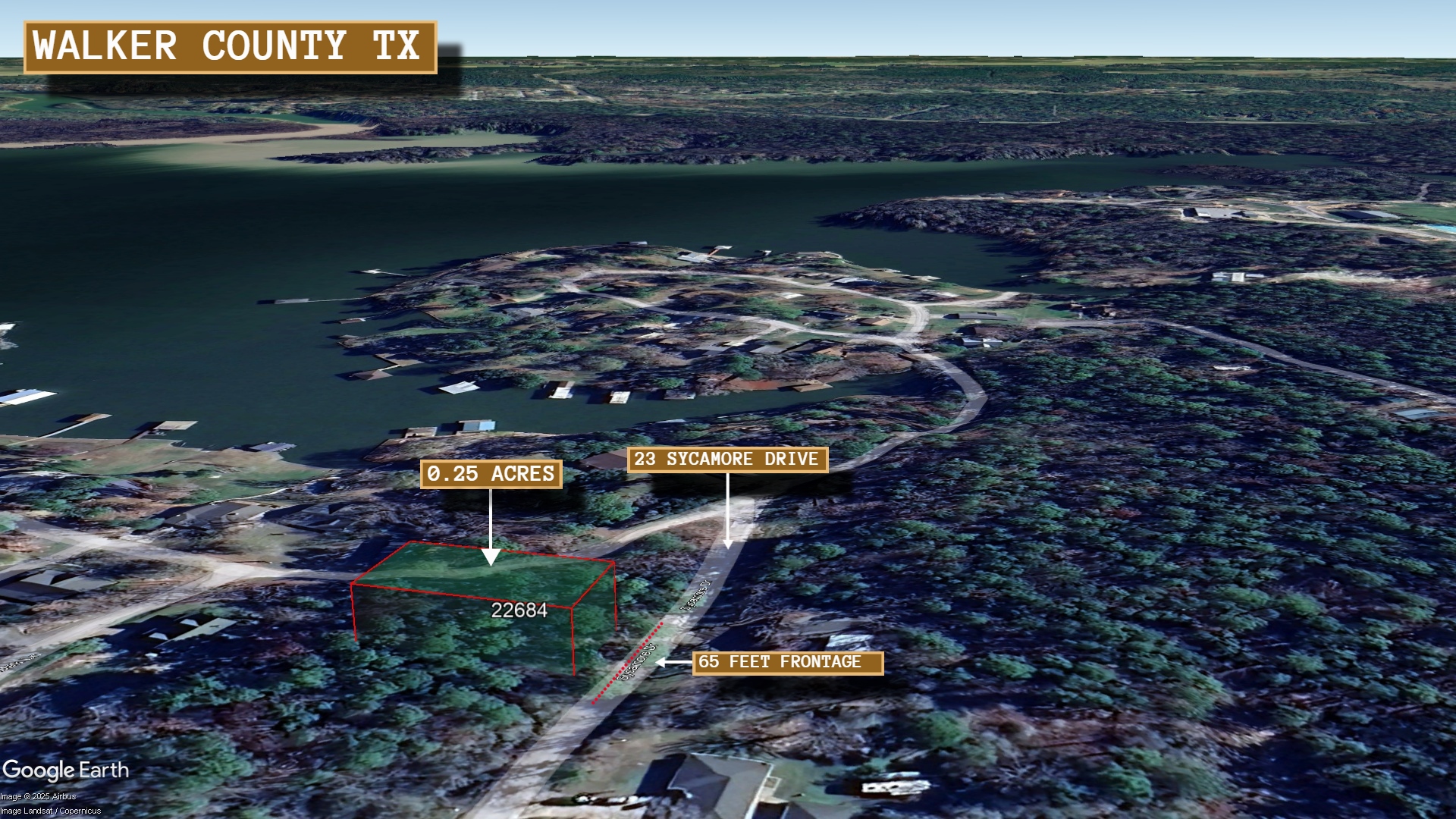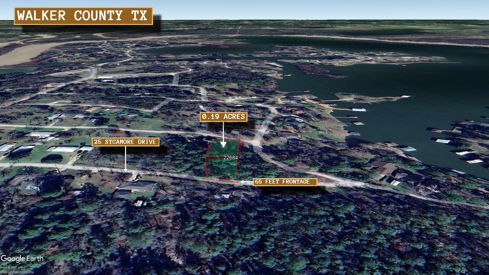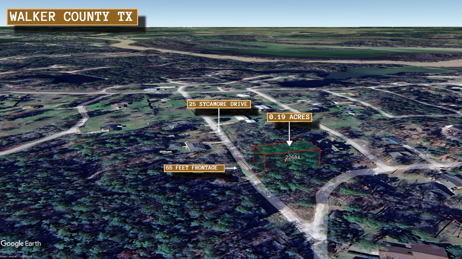 This 0.19 acre lot is located in Huntsville, Texas and the address is 25 Sycamore Drive, Huntsville, TX 77320.