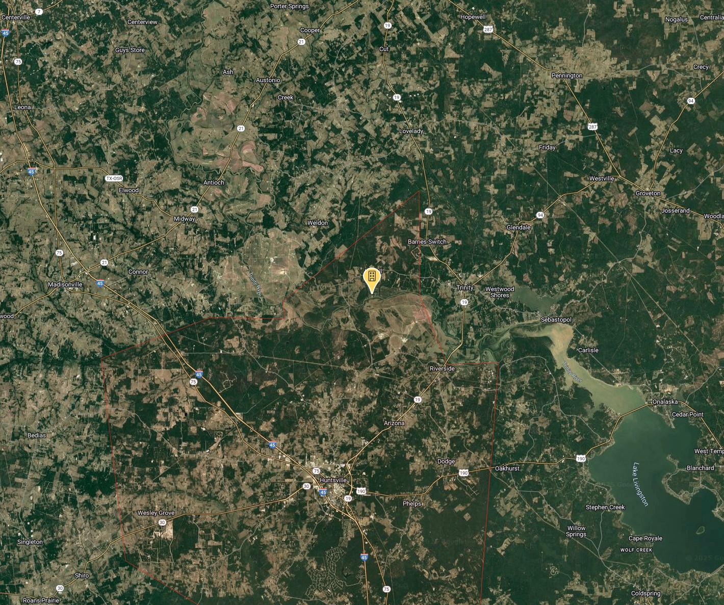 A historic river town nestled in the Piney Woods of East Texas, Trinity is the county seat of Trinity County. Founded in the 1820s along the Trinity River, it served as a vital steamboat port and timber hub during the 19th century.
