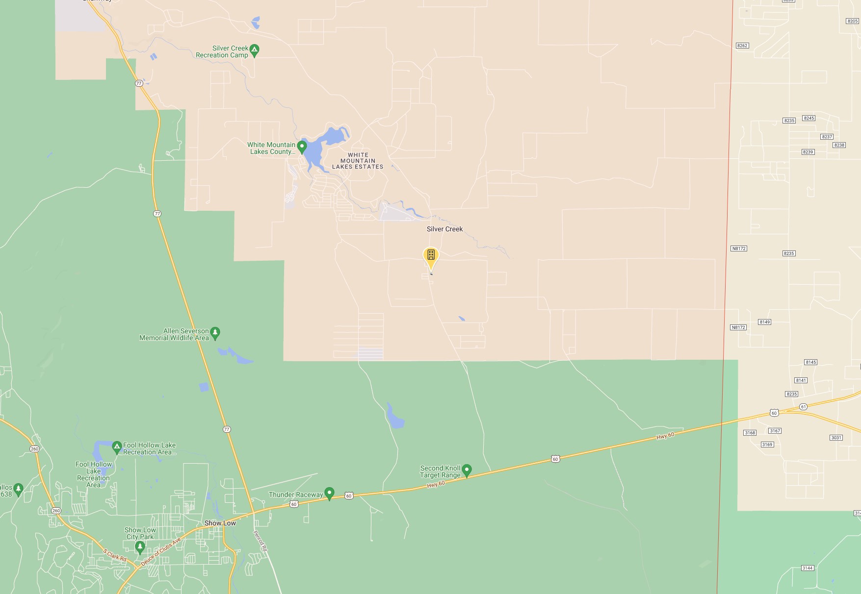 Show Low is located east of Flagstaff and Phoenix. It is located only a few miles from the White Mountain Lake. Enjoy boating, fishing and the great outdoors!