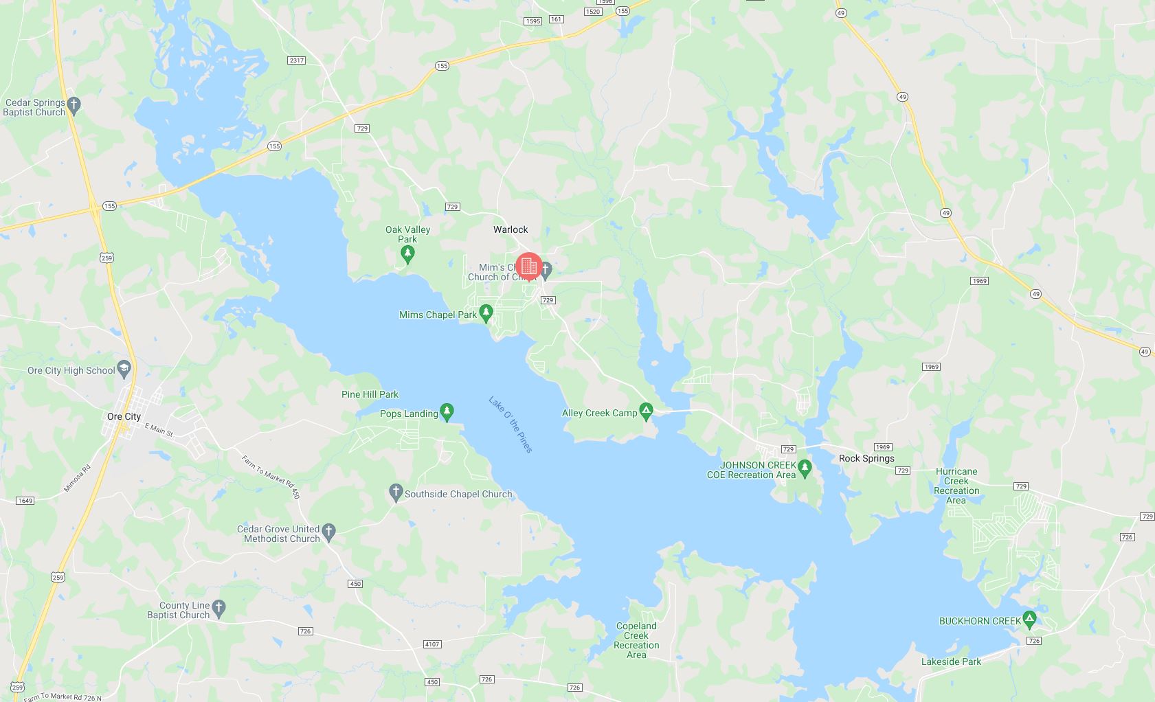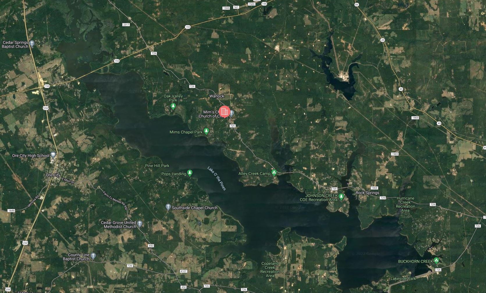 Avinger is located 152 miles East of Dallas, Texas and sits just 15 miles or 20 minutes North of The Lake O’ The Pines. Lake O’ the Pines includes about 18,700 acres of water and 9,000 acres of land located in the piney woods of Northeast Texas. Recreation opportunities are numerous with camping, boating, fishing, hunting, watchable wildlife, and bird watching, including wintering bald eagles.