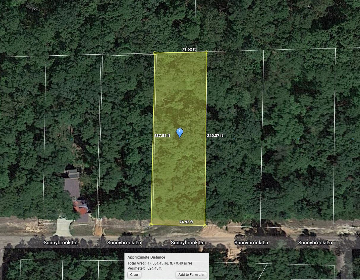 This 0.46 acre lot is located in Avinger, Texas and the address is Sunnybrook Lane, Avinger, TX 75630.