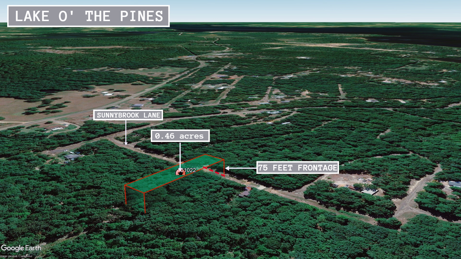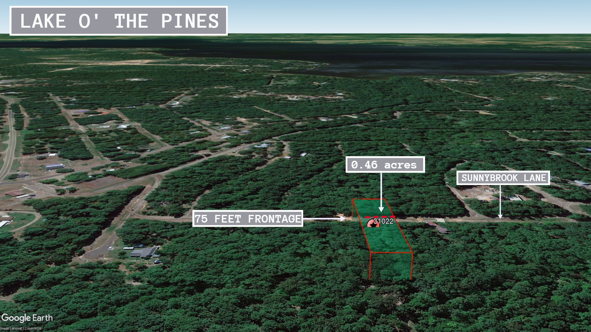 Features: Huge lot, close to Lake O the Pines