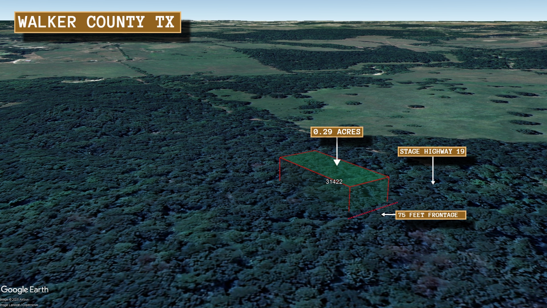 This 0.29 acre lot is located in Huntsville, Texas and the address is State Highway 19, Huntsville, TX 77320.