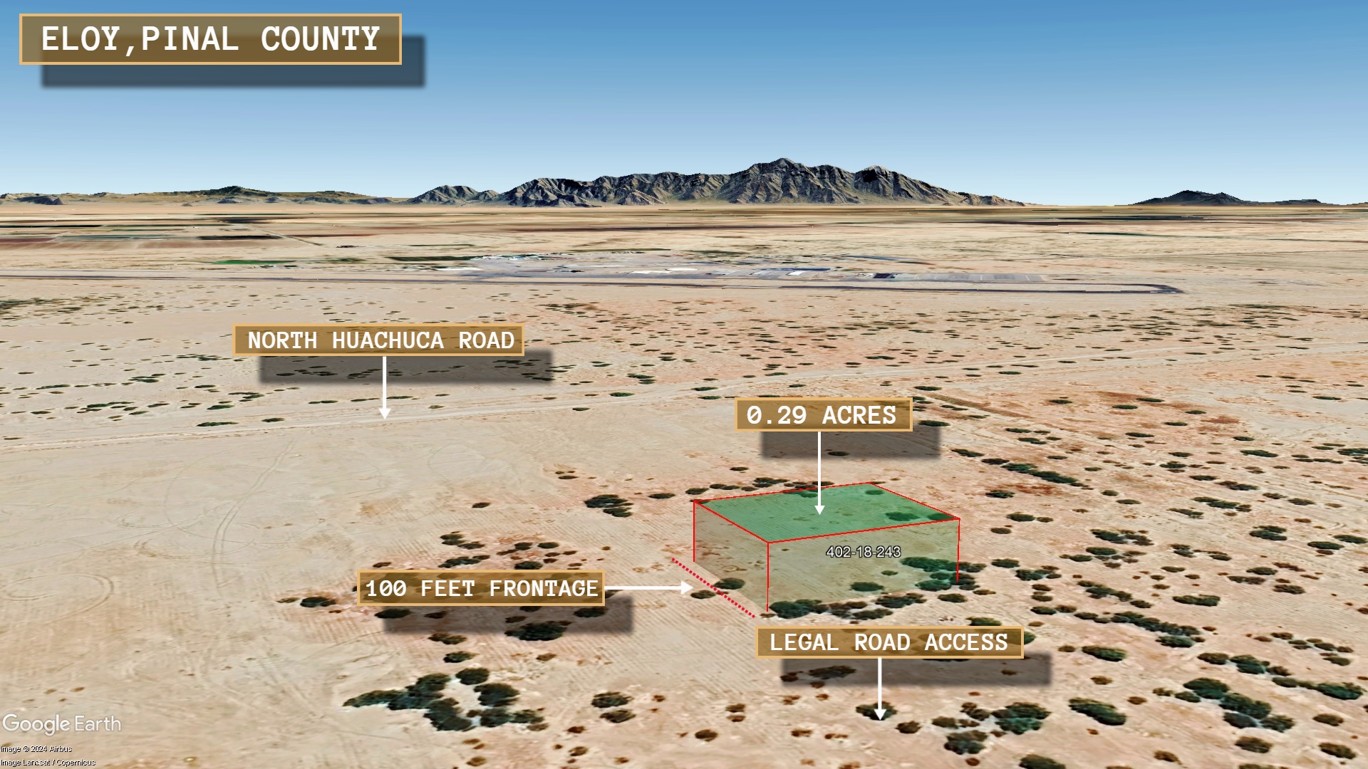 This 0.29 acre lot is located in Eloy, Arizona and the address is 2620 W Natanes Drive, Eloy, AZ 85131.