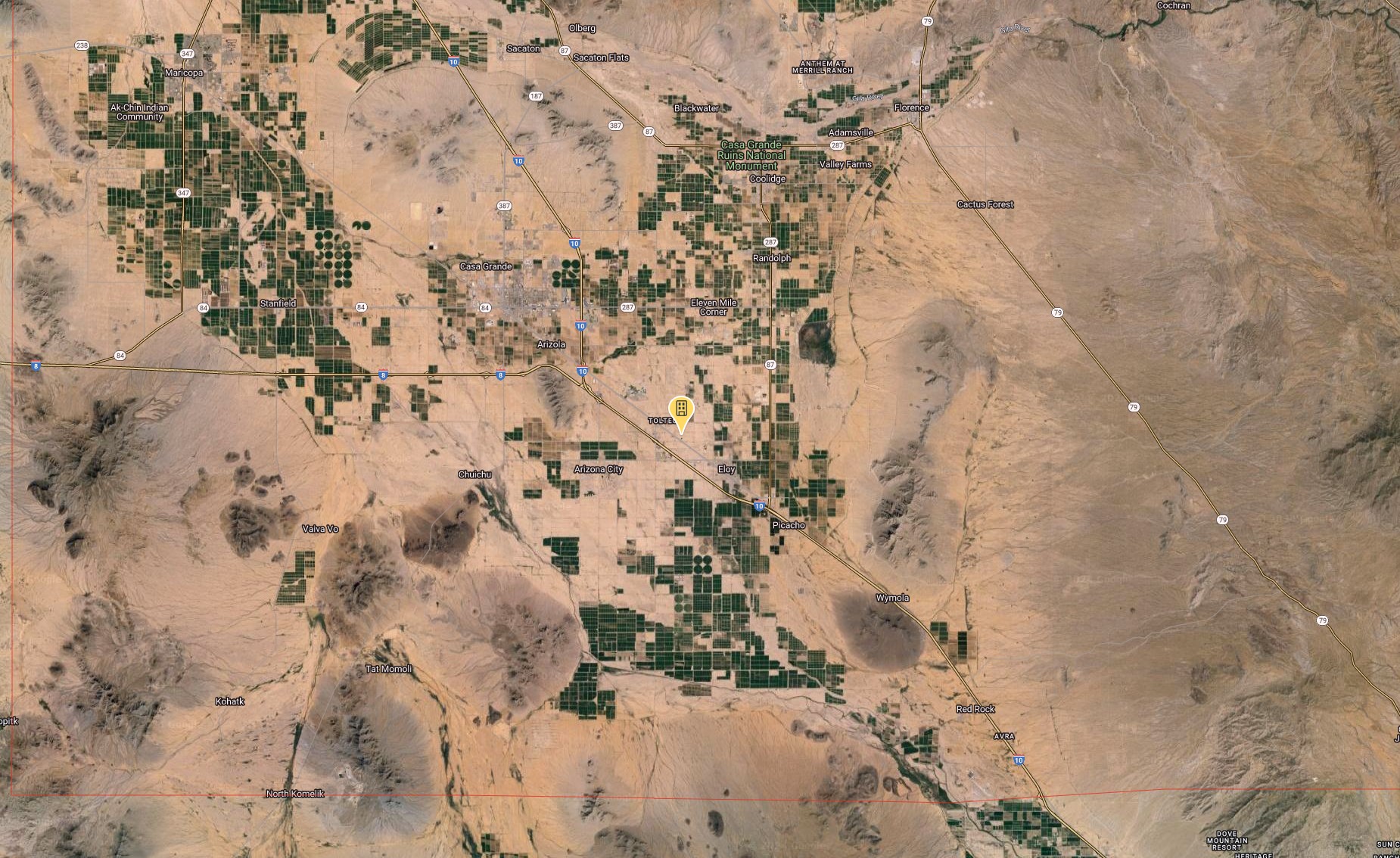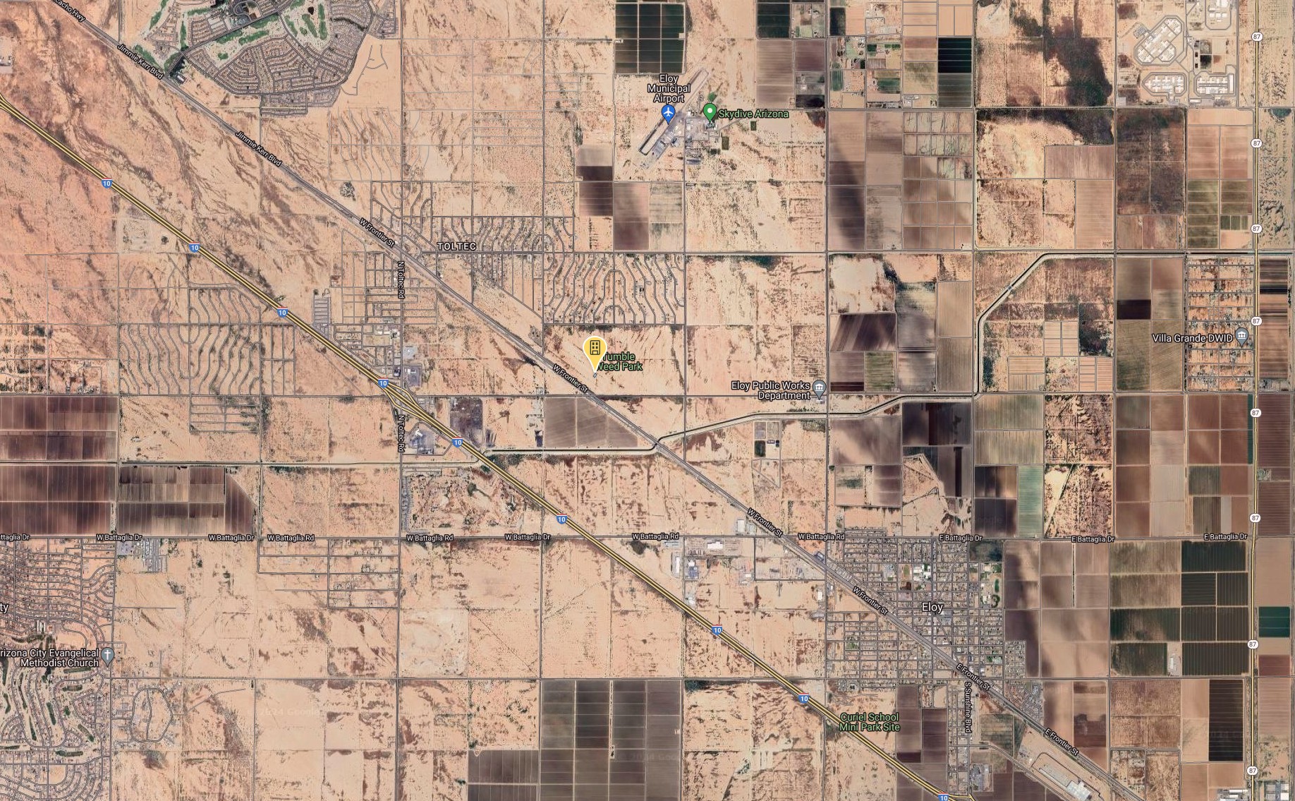 Eloy is just south of Phoenix, less than a hour drive. Midway between Phoenix and Tucson, Eloy began as a planned community.