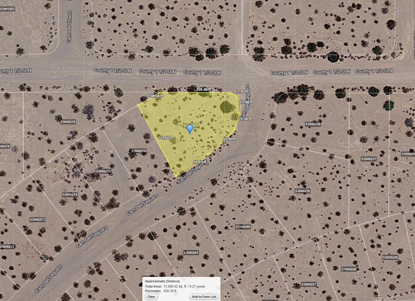 This 0.27 acre lot is located in Dateland, Arizona and the address is Cam Del Saguaro, Dateland, AZ 85333.