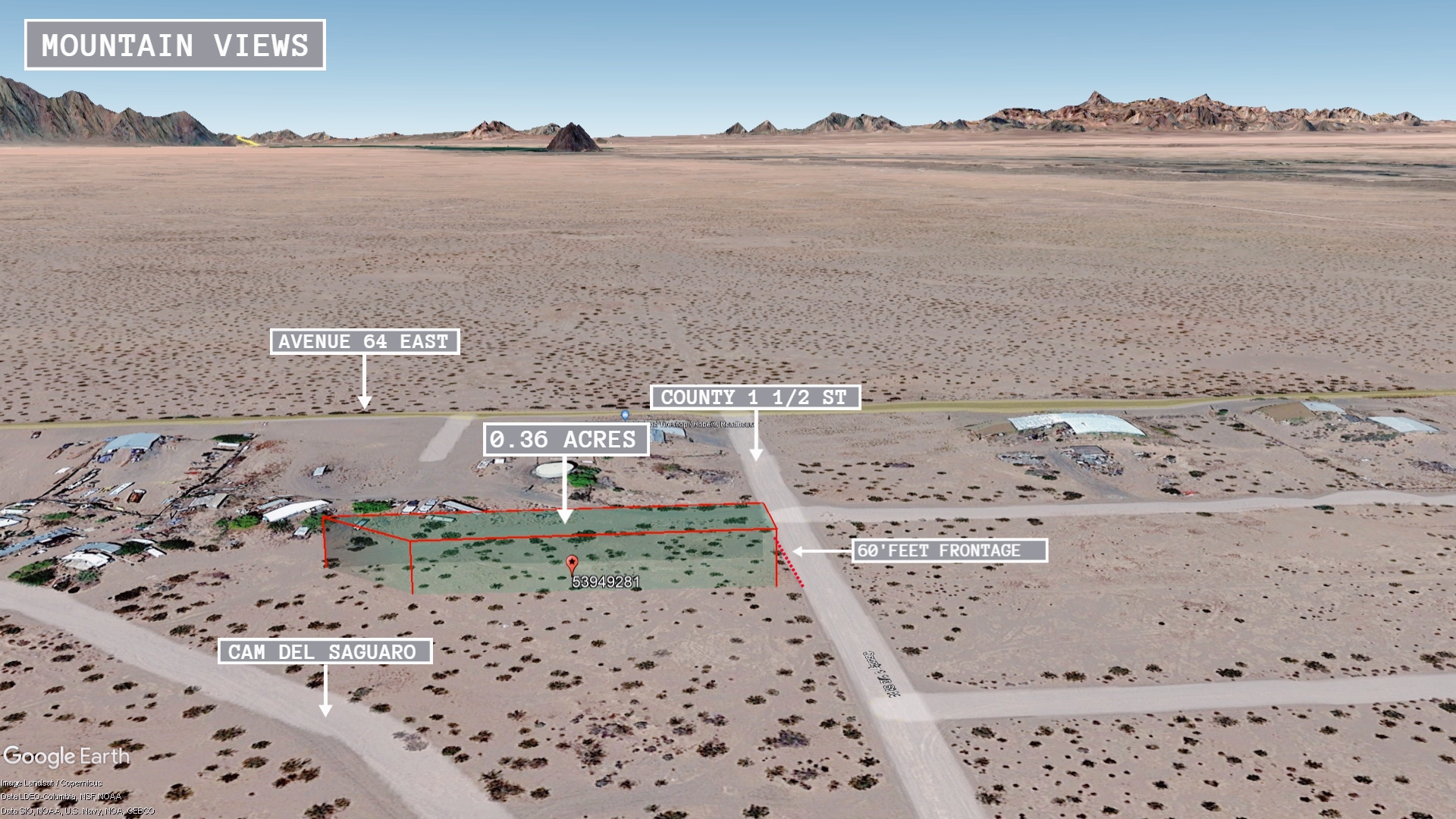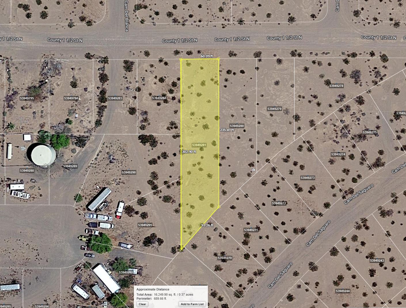 This 0.36 acre lot is located in Dateland, Arizona and the address is County 1 1/2 Street North, Dateland, AZ 85333.