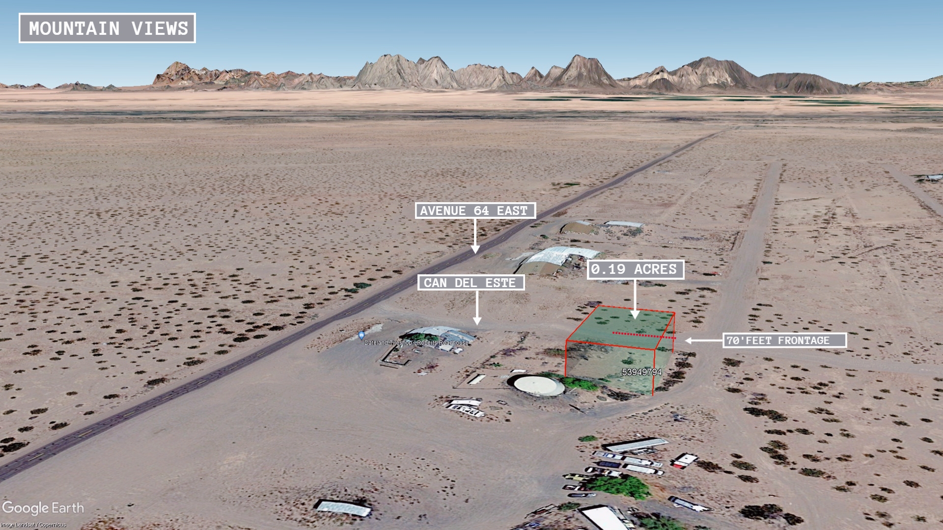 This 0.19 acre lot is located in Dateland, Arizona and the address is County 1 1/2 Street North, Dateland, AZ 85333.