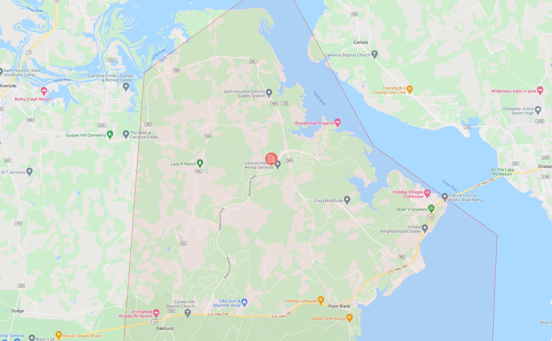County Contact Information: Call San Jacinto County Planning & Zoning at (936) 891-7710 – HOA: Waterwood: 936 377 2529