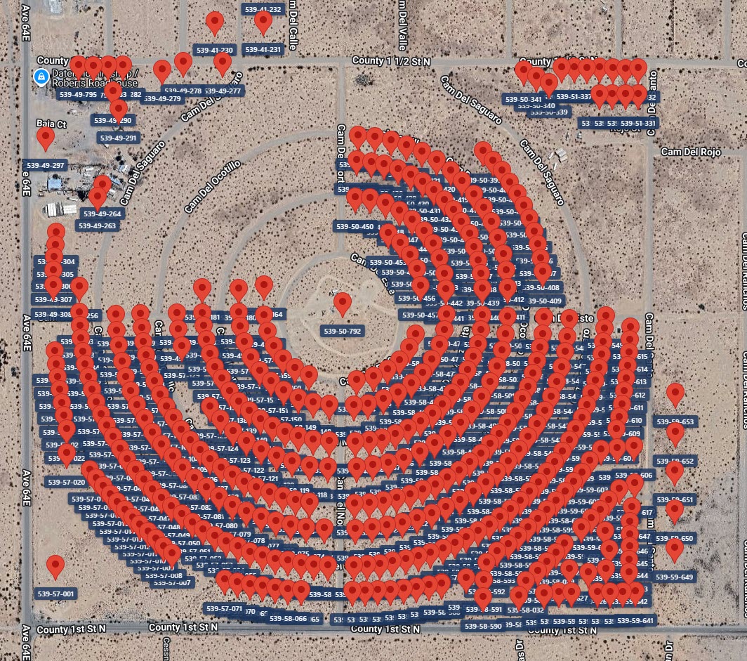 Features: 460-lot portfolio opportunity, 100+ acres total, RVS zoned for RVs/manufactured homes/tiny homes, $8/year taxes per lot, no HOA, power available via APS, water via Dateland Water Co or well, septic permitted, dirt road access, 90 min from Phoenix via I-8, bulk discounts up to 40% off $2.4M retail