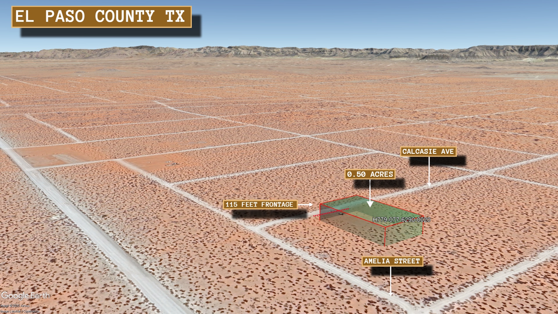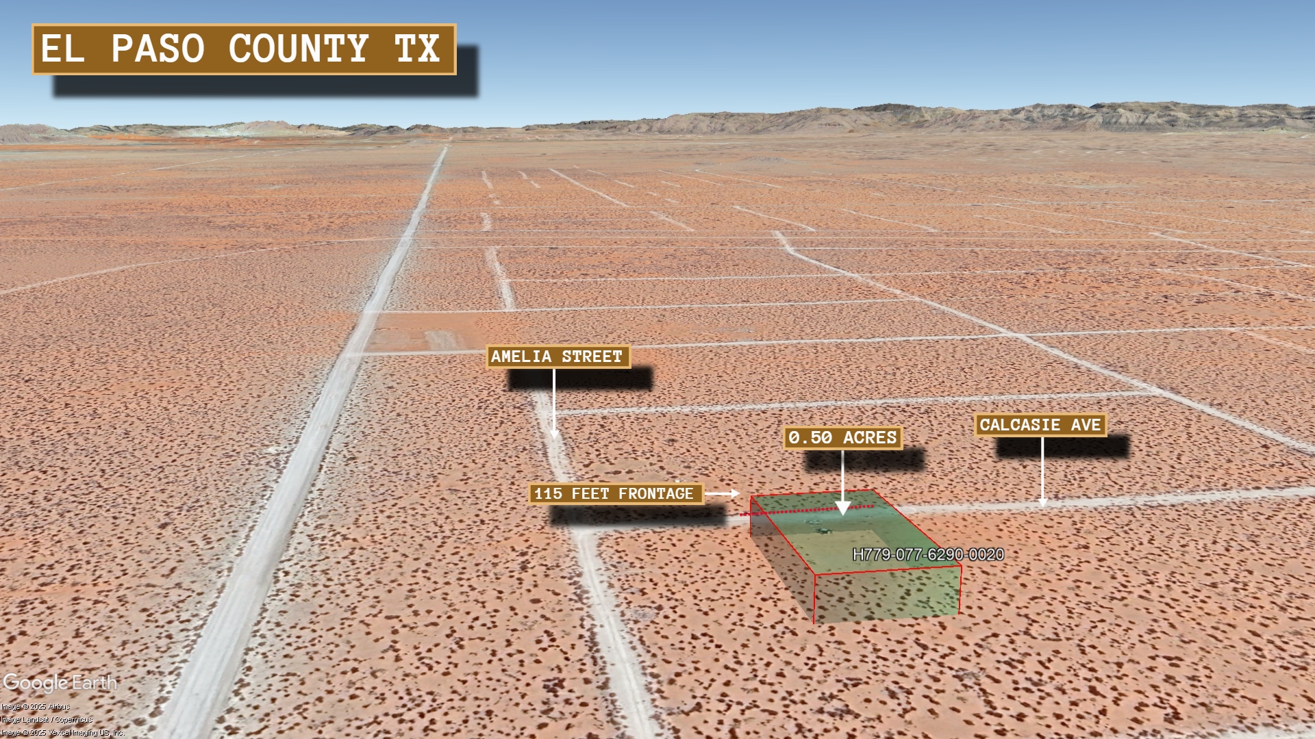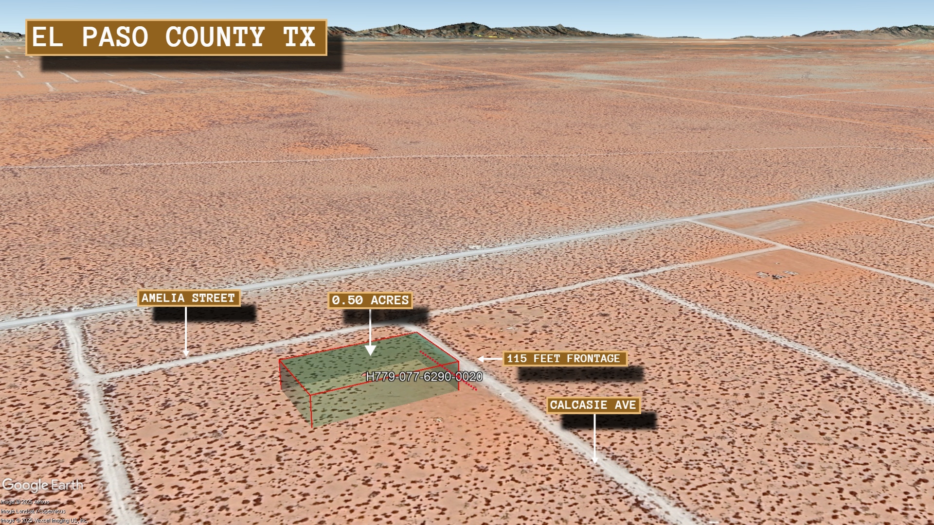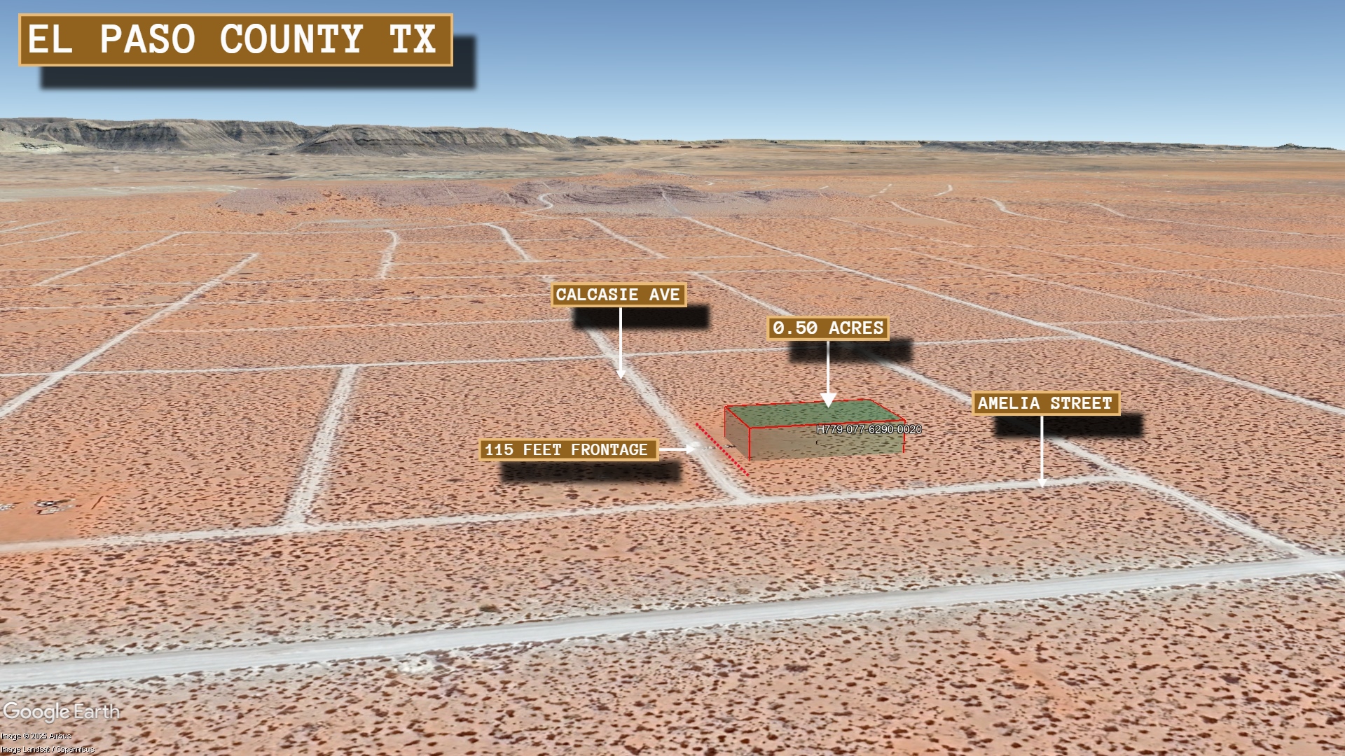 This 0.5 acre lot is located in El Paso, Texas and the address is Calcasie Avenue, El Paso, TX 79928.
